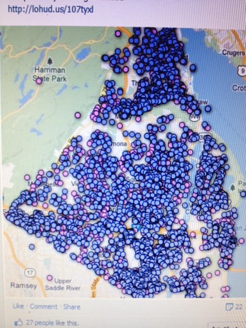 Here is a still-shot of my county. Each dot represents a lawfully, licensed pistol permit holder. When clicked on, the map provides the full name and address of the licensee. When zoomed in on, you can see the layout of my house. It’s outrageous.