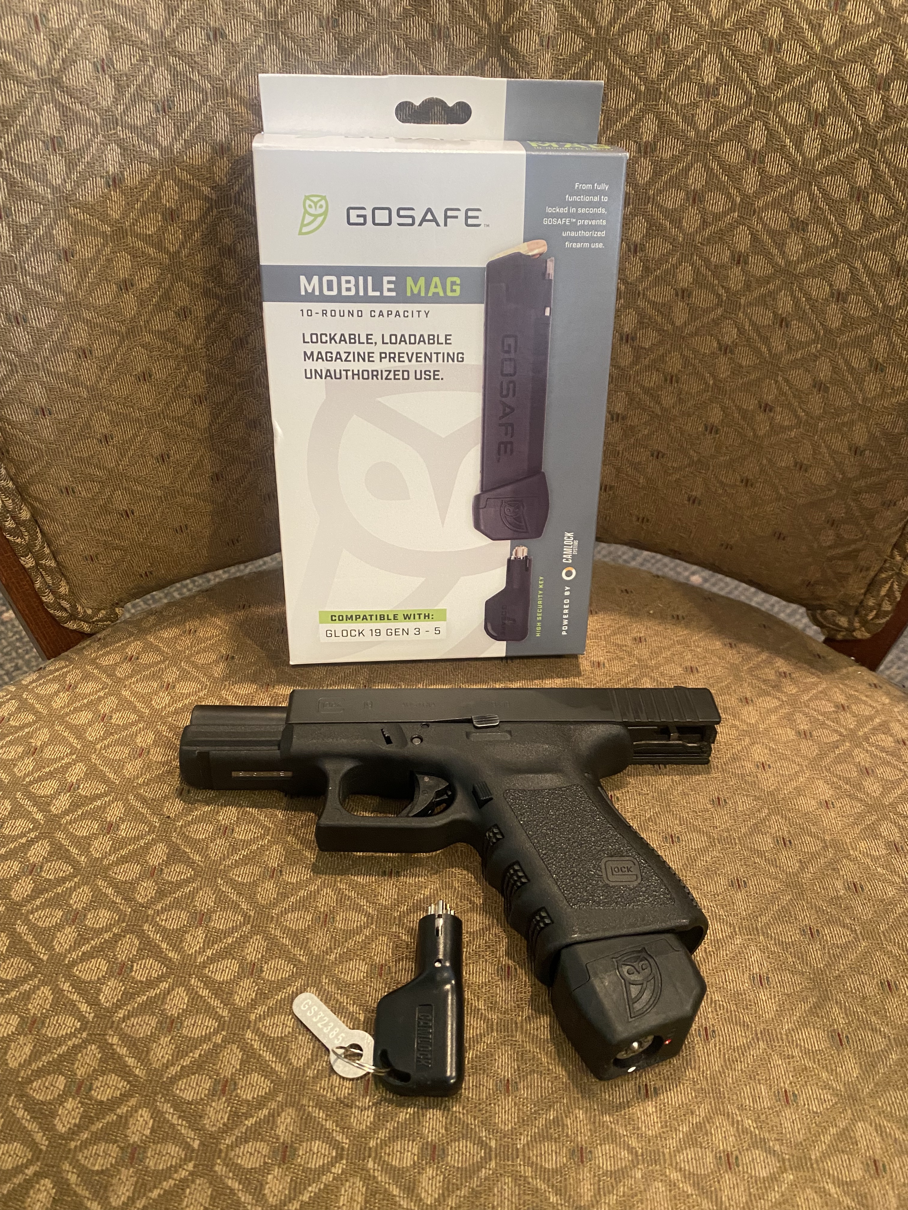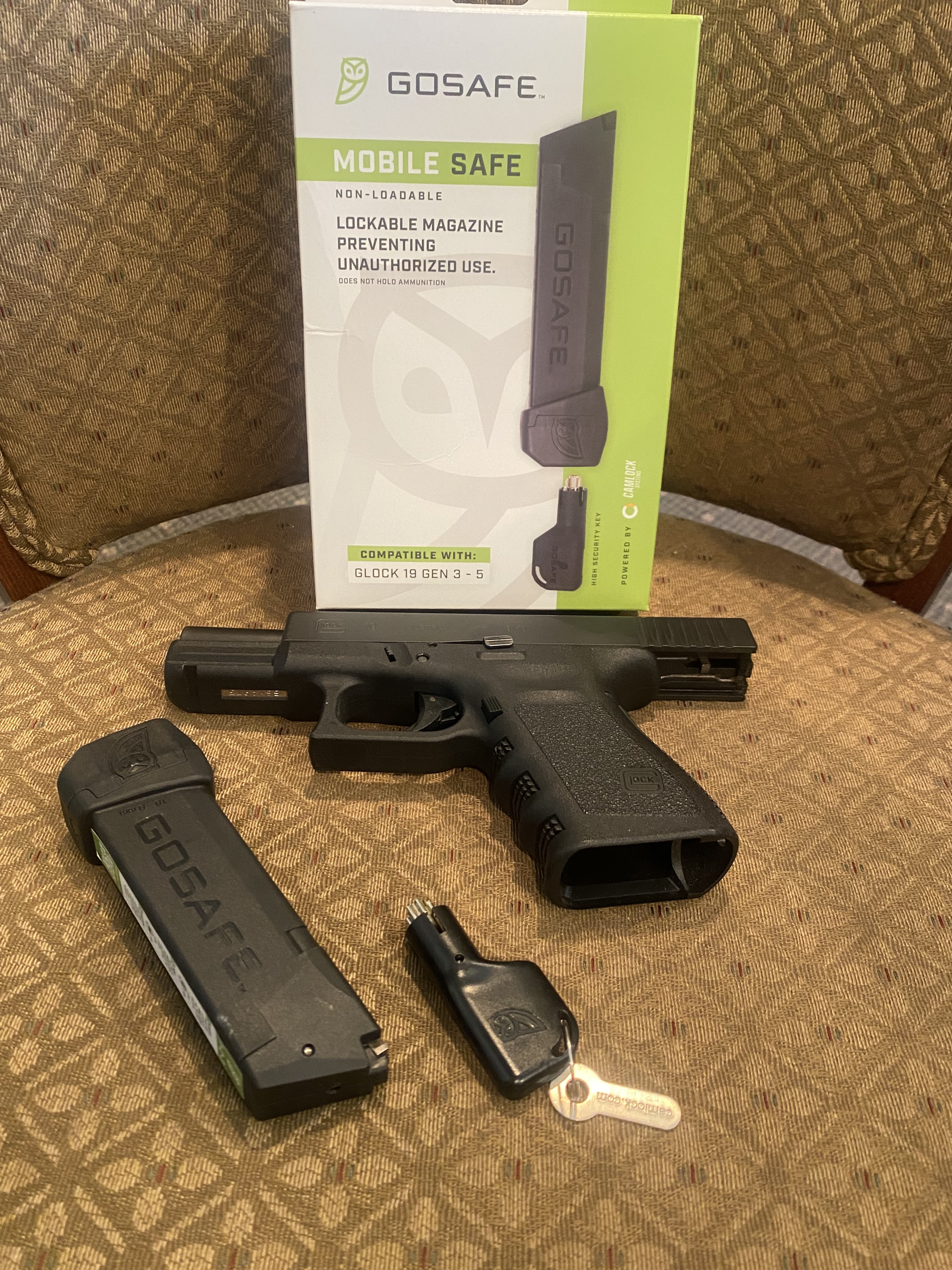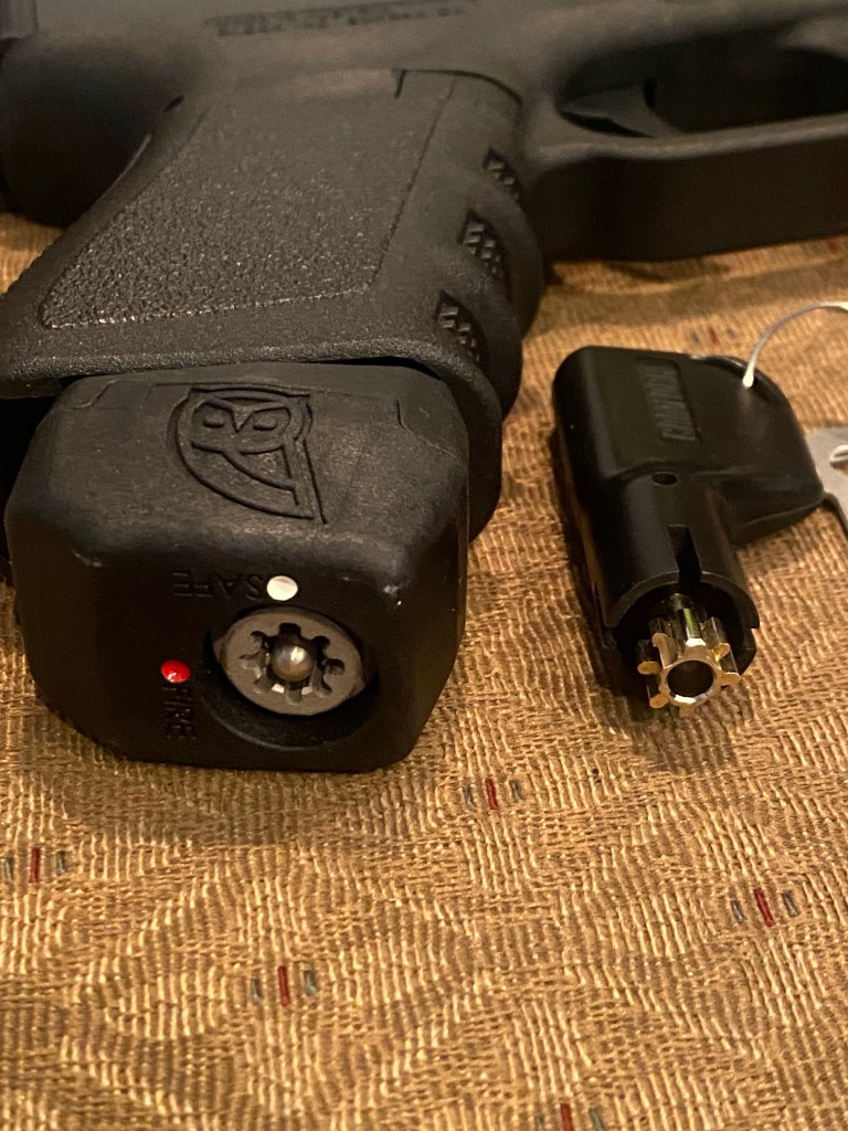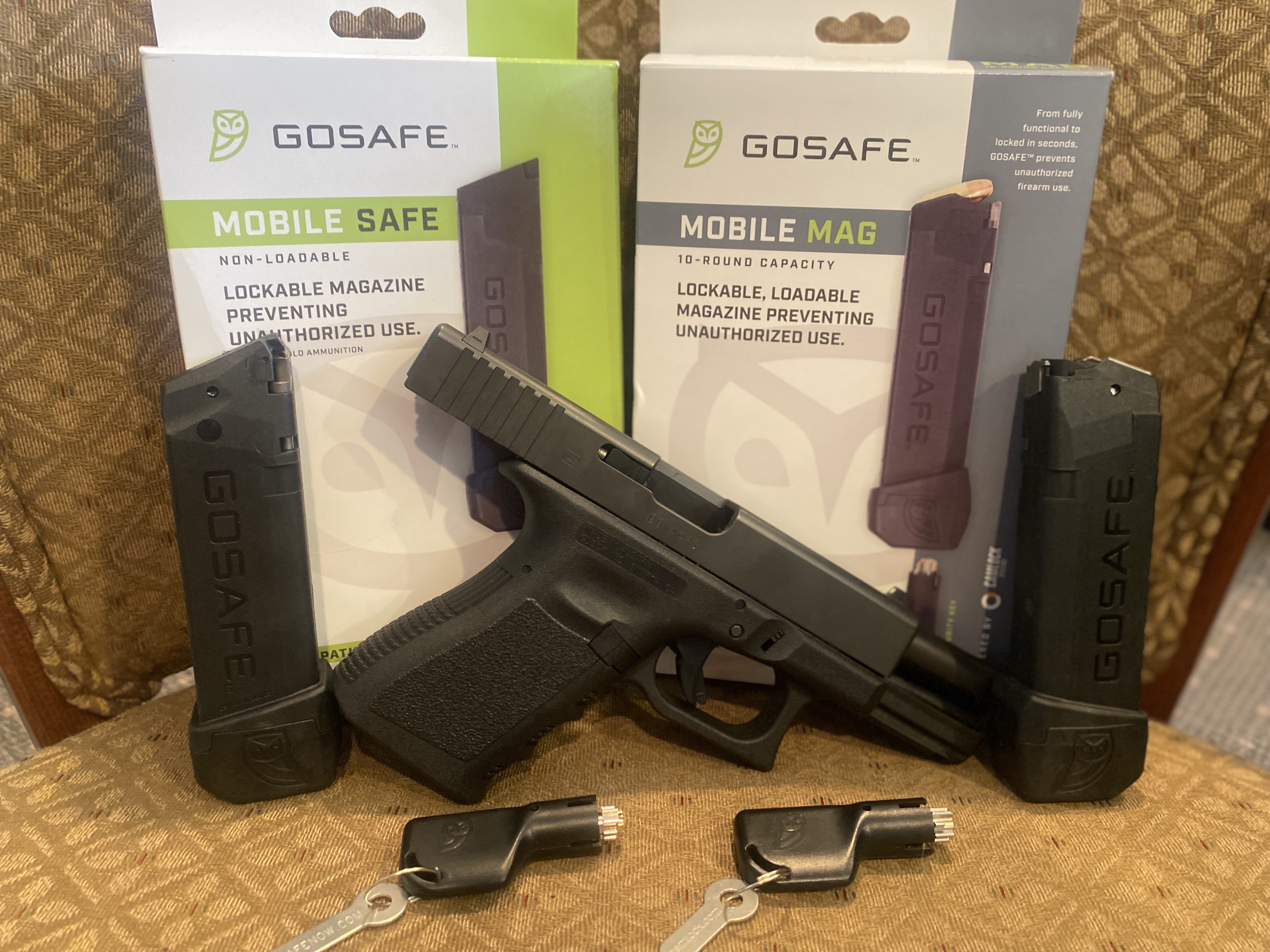Mobile Safe: A non-functioning, non-loadable dummy magazine, featuring a keyed lock on the base plate. The Mobile Safe contains no ammunition, it is only an internal gun safe. In order to operate the handgun, the Mobile Safe needs to be unlocked and dropped in order to facilitate a reload with a properly loaded magazine. With practice, this should take seconds to do. Easy to lock and unlock within seconds.