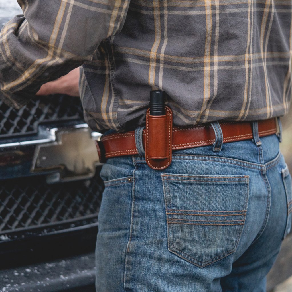 A “dual fuel” flashlight, Galco’s ships with both batteries and a nylon holster.